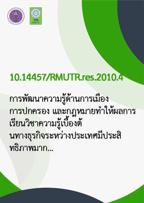 | Title | การพัฒนาความรู้ด้านการเมือง การปกครอง และกฎหมายทำให้ผลการเรียนวิชาความรู้เบื้องต้นทางธุรกิจระหว่างประเทศมีประสิทธิภาพมากขึ้น / |