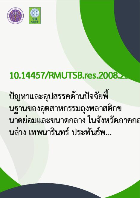 ปัญหาและอุปสรรคด้านปัจจัยพื้นฐานของอุตสาหกรรมถุงพลาสติกขนาดย่อมและขนาดกลาง ในจังหวัดภาคกลางตอนล่าง /เทพนารินทร์ ประพันธ์พัฒน์, อนุชา ขวัญสุข, ประวิทย์ ตฤนรัชตเมธี |