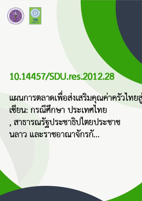 | Title | แผนการตลาดเพื่อส่งเสริมคุณค่าครัวไทยสู่ตลาดอาเซียน: กรณีศึกษา ประเทศไทย, สาธารณรัฐประชาธิปไตยประชาชนลาว และราชอาณาจักรกัมพูชา |