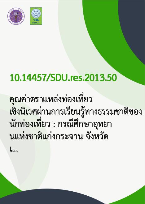 คุณค่าตราแหล่งท่องเที่ยวเชิงนิเวศผ่านการเรียนรู้ทางธรรมชาติของนักท่องเที่ยว : กรณีศึกษาอุทยานแห่งชาติแก่งกระจาน จังหวัดเพชรบุรี ประเทศไทย |