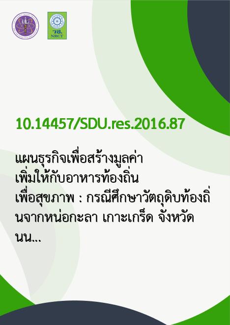 แผนธุรกิจเพื่อสร้างมูลค่าเพิ่มให้กับอาหารท้องถิ่นเพื่อสุขภาพ : กรณีศึกษาวัตถุดิบท้องถิ่นจากหน่อกะลา เกาะเกร็ด จังหวัดนนทบุรี |