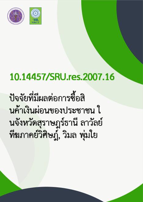 | Title | ปัจจัยที่มีผลต่อการซื้อสินค้าเงินผ่อนของประชาชน ในจังหวัดสุราษฎร์ธานี / |