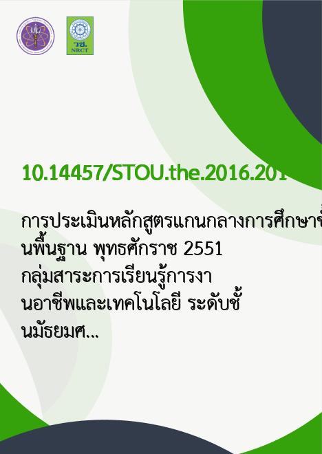 Abstract การวิจัยนี้มีวัตถุประสงค์เพื่อ (1) ประเมินปัจจัยเบื้องต้นของหลักสูตร (2) ประเมินกระบวนการดำเนินงานของหลักสูตร และ (3) ประเมินผลผลิตของหลักสูตรแกนกลางการศึกษาขั้นพื้นฐาน พุทธศักราช 2551 กลุ่มสาระการเรียนรู้การงานอาชีพและเทคโนโลยี ระดับมัธยมศึกษาตอนต้น ของโรงเรียนในสังกัดสำนักงานเขตพื้นที่การศึกษามัธยมศึกษา เขต 29 ผู้ให้ข้อมูล ได้แก่ ผู้บริหาร จำนวน 67 คน ครูผู้สอน จำนวน 223 คน นักเรียน จำนวน 380 คน รวมทั้งสิ้น จำนวน 670 คน เครื่องมือวิจัย ได้แก่ แบบสอบถาม และแบบบันทึกข้อมูล การวิเคราะห์ข้อมูลโดยใช้ ค่าร้อยละ ค่าเฉลี่ย ส่วนเบี่ยงเบนมาตรฐานและการวิเคราะห์เนื้อหา ผลการวิจัยปรากฏว่า (1) ด้านปัจจัยเบื้องต้นโดยภาพรวมมีความเหมาะสมระดับมาก ได้แก่ ด้าน ครูผู้สอน ด้านสื่อและแหล่งเรียนรู้ และด้านงบประมาณ (2) ด้านกระบวนการดำเนินงานโดยภาพรวมมีความเหมาะสมระดับมาก ได้แก่ การบริหารหลักสูตร การจัดกิจกรรมการเรียนรู้ การวัดผลและประเมินผล และ (3) ด้านผลผลิต โดยภาพรวมมีความเหมาะสมระดับมาก ได้แก่ ผลสัมฤทธิ์ทางการเรียน และคุณลักษณะของผู้เรียน ได้แก่ คุณลักษณะทั่วไป คุณลักษณะเฉพาะ และคุณธรรมจริยธรรมของผู้เรียน ซึ่งผลการประเมินเป็นไปตามเกณฑ์ที่กำหนด || The objectives of this research were (1) to evaluate the input of the lower secondary level Career and Technology Learning Area of the Basic Education Core Curriculum B.E. 2551 as implemented in Schools under the Office of Secondary Education Service Area 29; (2) to evaluate the process of the Curriculum; and (3) to evaluate the output of the Curriculum. The key research informants were 670 persons classified into 67 administrators, 223 teachers and 380 students. The research instruments were a questionnaire and a data recording form. Data were analyzed using the percentage, mean, standard deviation, and content analysis. The results showed that (1) regarding the input evaluation, it was found that the input as a whole including the teachers, instructional media and learning sources, and budget was appropriate at the high level; (2) regarding the process evaluation, it was found that the process as a whole including the curriculum management, organization of learning activities, and measurement and evaluation was appropriate at the high level; and (3) regarding the output evaluation; it was found that the output as a whole including the students’ learning achievement, the students’ characteristics which included their general and specific characteristics, and the students’ morality and ethics was appropriate at the high level. Thus, the evaluation results met the pre-determined criteria.