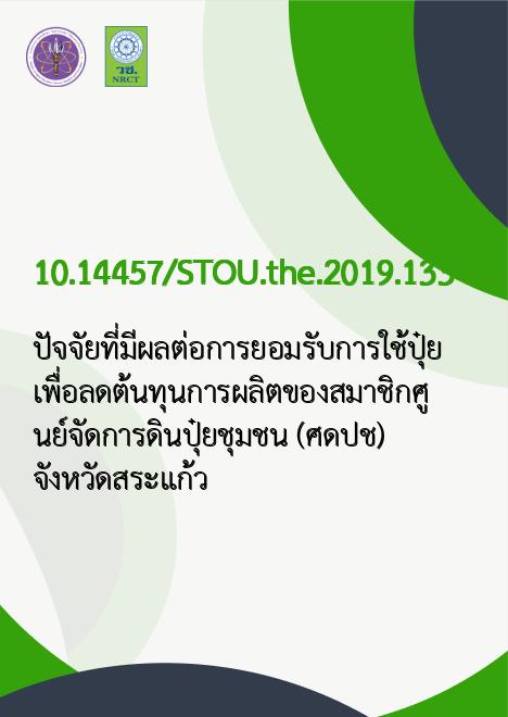 ปัจจัยที่มีผลต่อการยอมรับการใช้ปุ๋ยเพื่อลดต้นทุนการผลิตของสมาชิกศูนย์จัดการดินปุ๋ยชุมชน (ศดปช.) จังหวัดสระแก้ว |