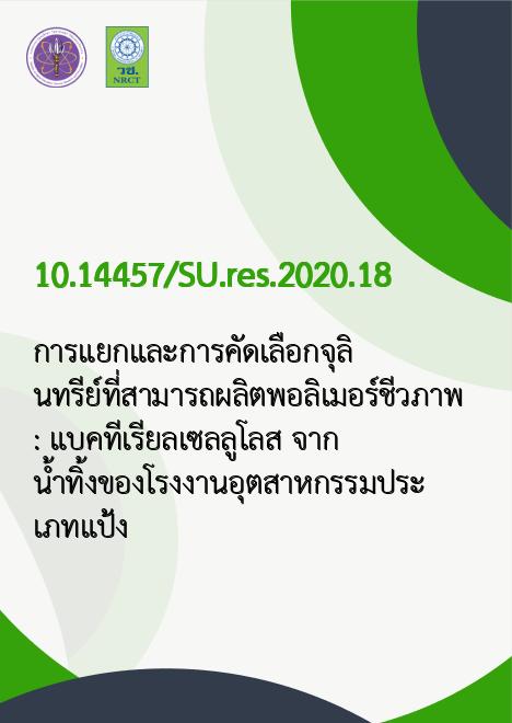 | Title | การแยกและการคัดเลือกจุลินทรีย์ที่สามารถผลิตพอลิเมอร์ชีวภาพ : แบคทีเรียลเซลลูโลส จากน้ำทิ้งของโรงงานอุตสาหกรรมประเภทแป้ง |