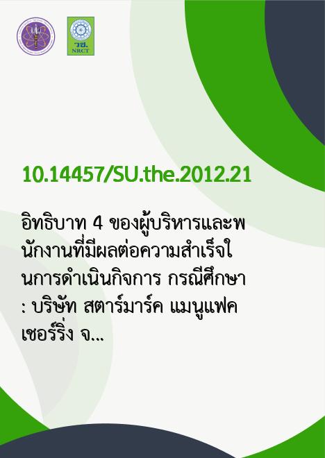 Title อิทธิบาท 4 ของผู้บริหารและพนักงานที่มีผลต่อความสำเร็จในการดำเนินกิจการ กรณีศึกษา : บริษัท สตาร์มาร์ค แมนูแฟคเชอร์ริ่ง จำกัด จังหวัดสมุทรสาคร