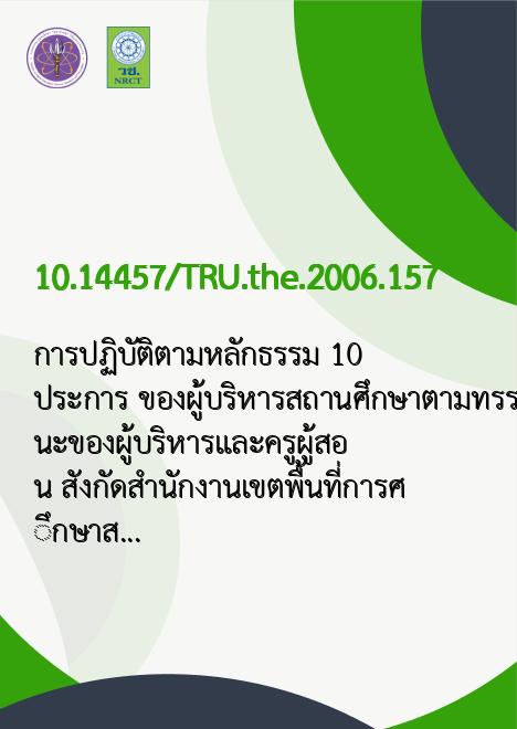การปฏิบัติตามหลักธรรม 10 ประการ ของผู้บริหารสถานศึกษาตามทรรศนะของผู้บริหารและครูผู้สอน สังกัดสำนักงานเขตพื้นที่การศึกษาสิงห์บุรี |