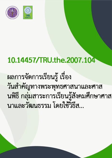 | Title | ผลการจัดการเรียนรู้ เรื่อง วันสำคัญทางพระพุทธศาสนาและศาสนพิธี กลุ่มสาระการเรียนรู้สังคมศึกษาศาสนาและวัฒนธรรม โดยใช้วิธีสอนแบบปุจฉาวิสัชนา กับวิธีสอนแบบปกติ สำหรับนักเรียนชั้นมัธยมศึกษาปีที่ 6 |