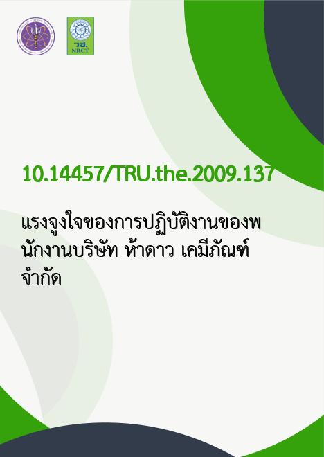 | Title | แรงจูงใจของการปฏิบัติงานของพนักงานบริษัท ห้าดาว เคมีภัณฑ์ จำกัด |