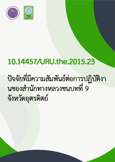 ปัจจัยที่มีความสัมพันธ์ต่อการปฏิบัติงานของสำนักทางหลวงชนบทที่ 9 จังหวัดอุตรดิตถ์ |