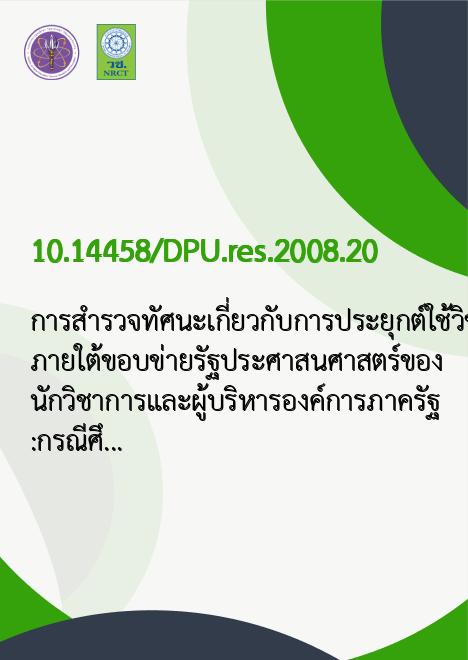 การสำรวจทัศนะเกี่ยวกับการประยุกต์ใช้วิชาต่างๆ ภายใต้ขอบข่ายรัฐประศาสนศาสตร์ของนักวิชาการและผู้บริหารองค์การภาครัฐ:กรณีศึกษาองค์การภาครัฐจังหวัดนนทบุรี