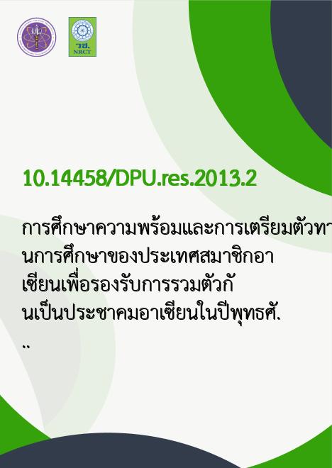 | Title | การศึกษาความพร้อมและการเตรียมตัวทางด้านการศึกษาของประเทศสมาชิกอาเซียนเพื่อรองรับการรวมตัวกันเป็นประชาคมอาเซียนในปีพุทธศักราช 2558 |