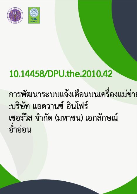การพัฒนาระบบแจ้งเตือนบนเครื่องแม่ข่ายโซลาริสกรณีศึกษา :บริษัท แอดวานซ์ อินโฟร์ เซอร์วิส จำกัด (มหาชน) /เอกลักษณ์ อ่ำอ่อน