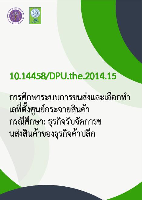 | Title | การศึกษาระบบการขนส่งและเลือกทำเลที่ตั้งศูนย์กระจายสินค้า กรณีศึกษา: ธุรกิจรับจัดการขนส่งสินค้าของธุรกิจค้าปลีก |