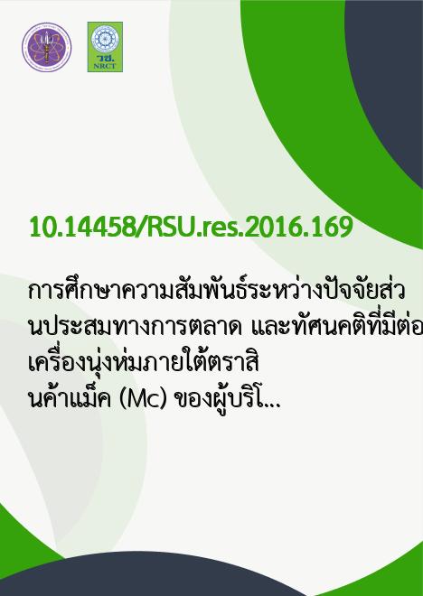 การศึกษาความสัมพันธ์ระหว่างปัจจัยส่วนประสมทางการตลาด และทัศนคติที่มีต่อเครื่องนุ่งห่มภายใต้ตราสินค้าแม็ค (Mc) ของผู้บริโภคในเขตกรุงเทพมหานครและปริมณฑล |