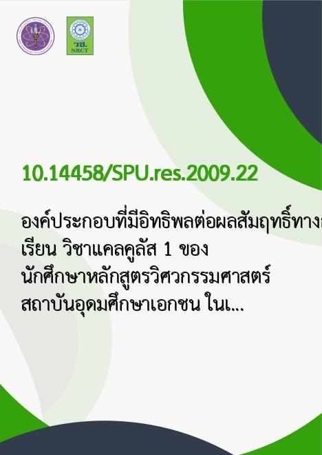 องค์ประกอบที่มีอิทธิพลต่อผลสัมฤทธิ์ทางการเรียน วิชาแคลคูลัส 1 ของนักศึกษาหลักสูตรวิศวกรรมศาสตร์ สถาบันอุดมศึกษาเอกชน ในเขตกรุงเทพมหานคร /ธัญกร คำแวง |