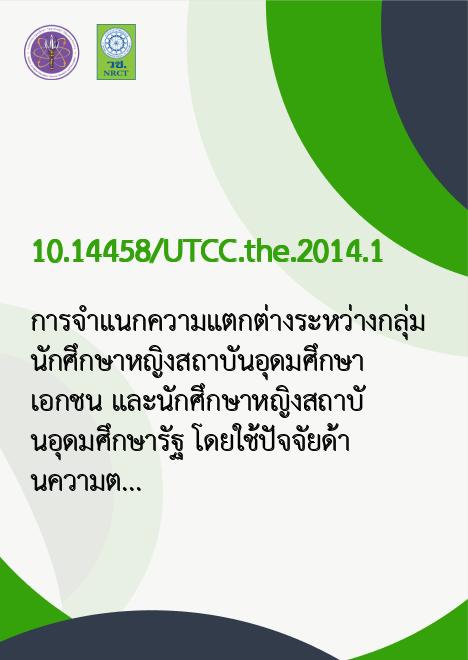 Title การจำแนกความแตกต่างระหว่างกลุ่ม นักศึกษาหญิงสถาบันอุดมศึกษาเอกชน และนักศึกษาหญิงสถาบันอุดมศึกษารัฐ โดยใช้ปัจจัยด้านความต้องการต่อส่วนประสมทางการตลาด 7P's เมื่อซื้อเสื้อนักศึกษาหญิง กรณีศึกษาในเขตกรุงเทพมหานคร